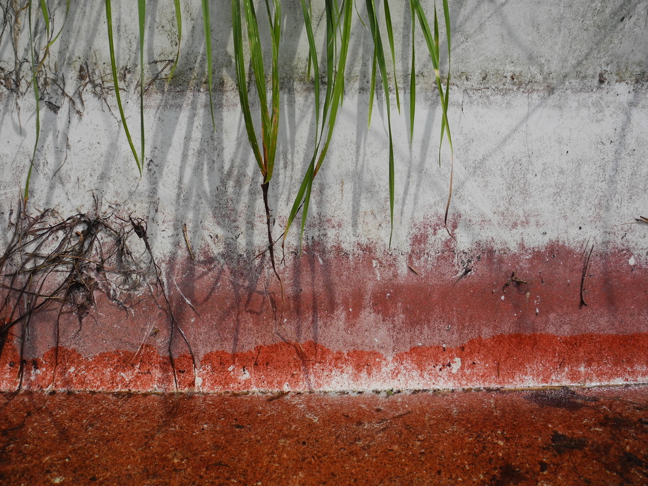 Questa è la parete interna di un vasca da bagno riutilizzata a scopo agricolo. L'acqua, tinta soprattutto da depositi di foglie di noce, ha lasciato delle strisce colorate. È un'immagine che corrisponde bene alla natura di questo sito, nato da una lenta stratificazione (non di frammenti vegetali e pigmenti ma di scritti). E i colori possono corrispondere un po' all'autore, con quelle sedimentazioni rosse stratificate, di rossi diversi, accompagnate dal verde che cresce.